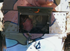 Of note visible from the Left Side / Gunner's Side, are the L-shaped grip to adjust positioning of the gun for aiming, and support while loading. As well as the mounting sleeve for the Telescopic Sight for the 37mm gun.