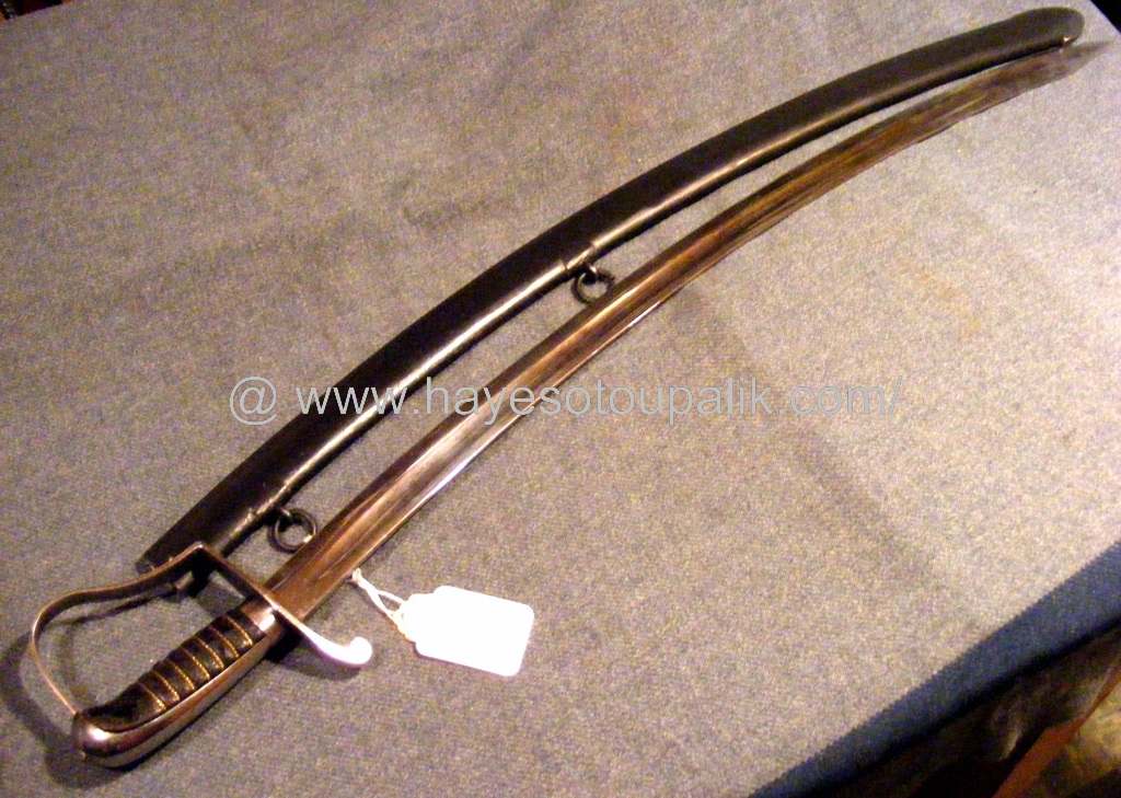 US Starr Contract Cavalry/Dragoon Saber with original Scabbard. These were issued and carried until replaced by the M1833 Dragoon Saber in the 1830's. Blade has full Starr Markings with Inspectors stamps. Scabbard has been repainted. Very Fine overall condition. $895.00