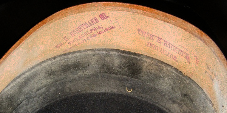 M1881 Indian War US Cavalry Dress helmet with cords. Size 7, Horstmann contract and US Inspector and QMD/Phila Depot stampings inside sweatband. Exc condition. About impossible to find these early US Cavalry Enlisted Dress helmets in complete condition with original one piece Triplett and chest wool cords. $1875.00