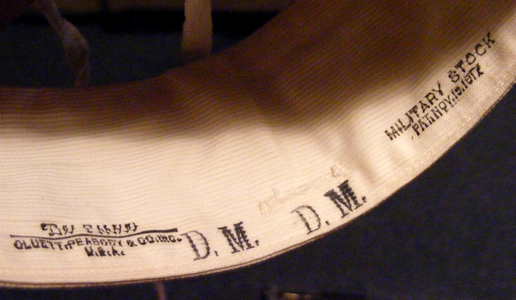 WW1 US White Military Collar. Marked in side "Military Stock" Patented Nov. 19, 1917. Great find for officer's display. $29.50