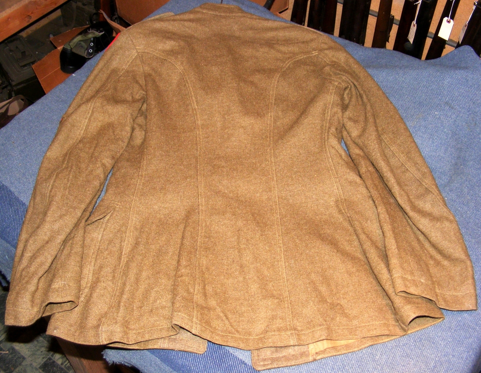 WW1 39th division tunic. Beautiful French made patch Discharge stripe, 1 overseas stripe and Corporal Chevron. No collar Discs. Nice cond. Beautiful Cyclone Patch. Scarce. $225.00